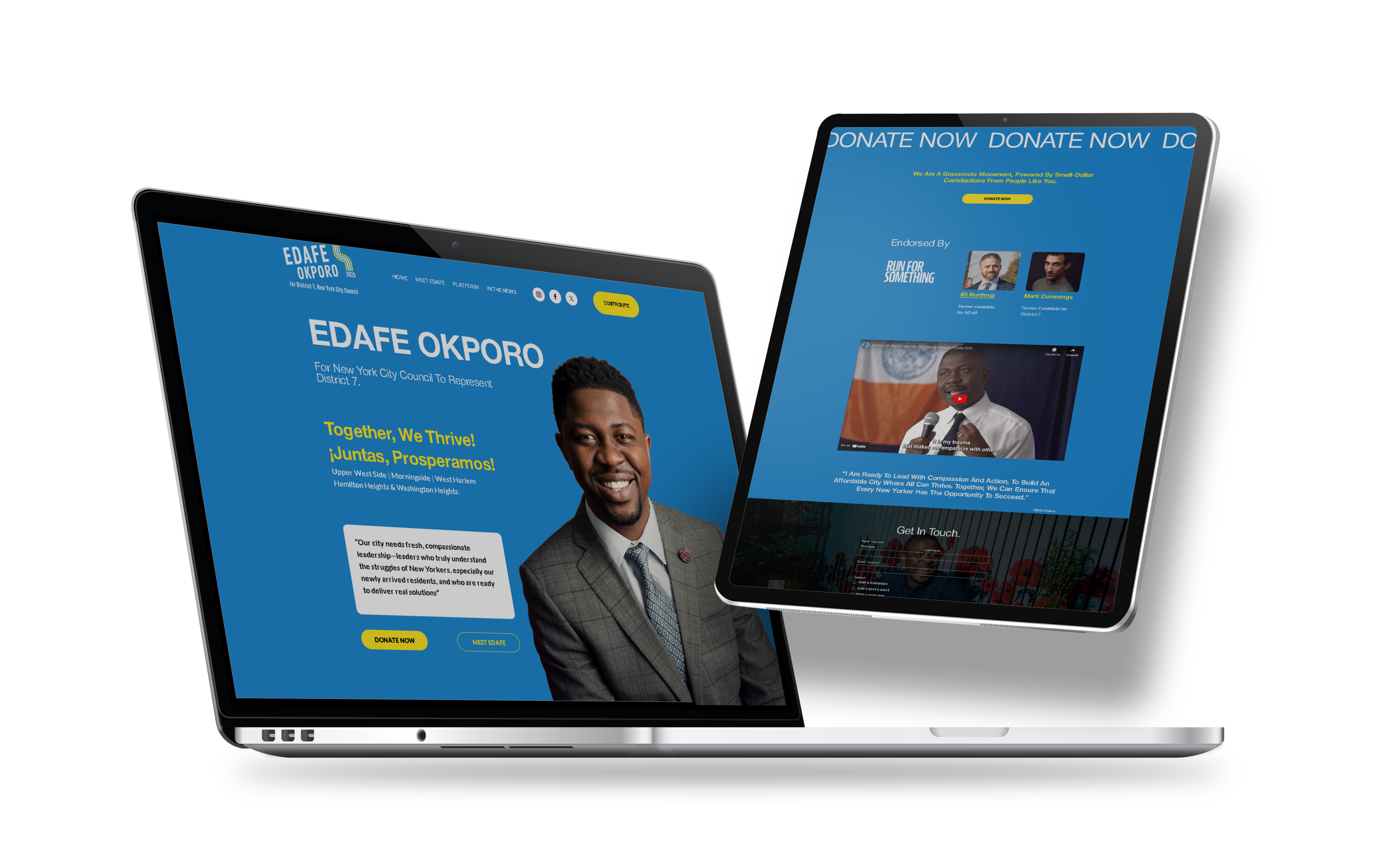 Edafe’s campaign needed a website and personal brand refinement to deliver his message to new yorkers from Upper West Side, Morningside, West Harlem Hamilton Heights & Washington Heights.