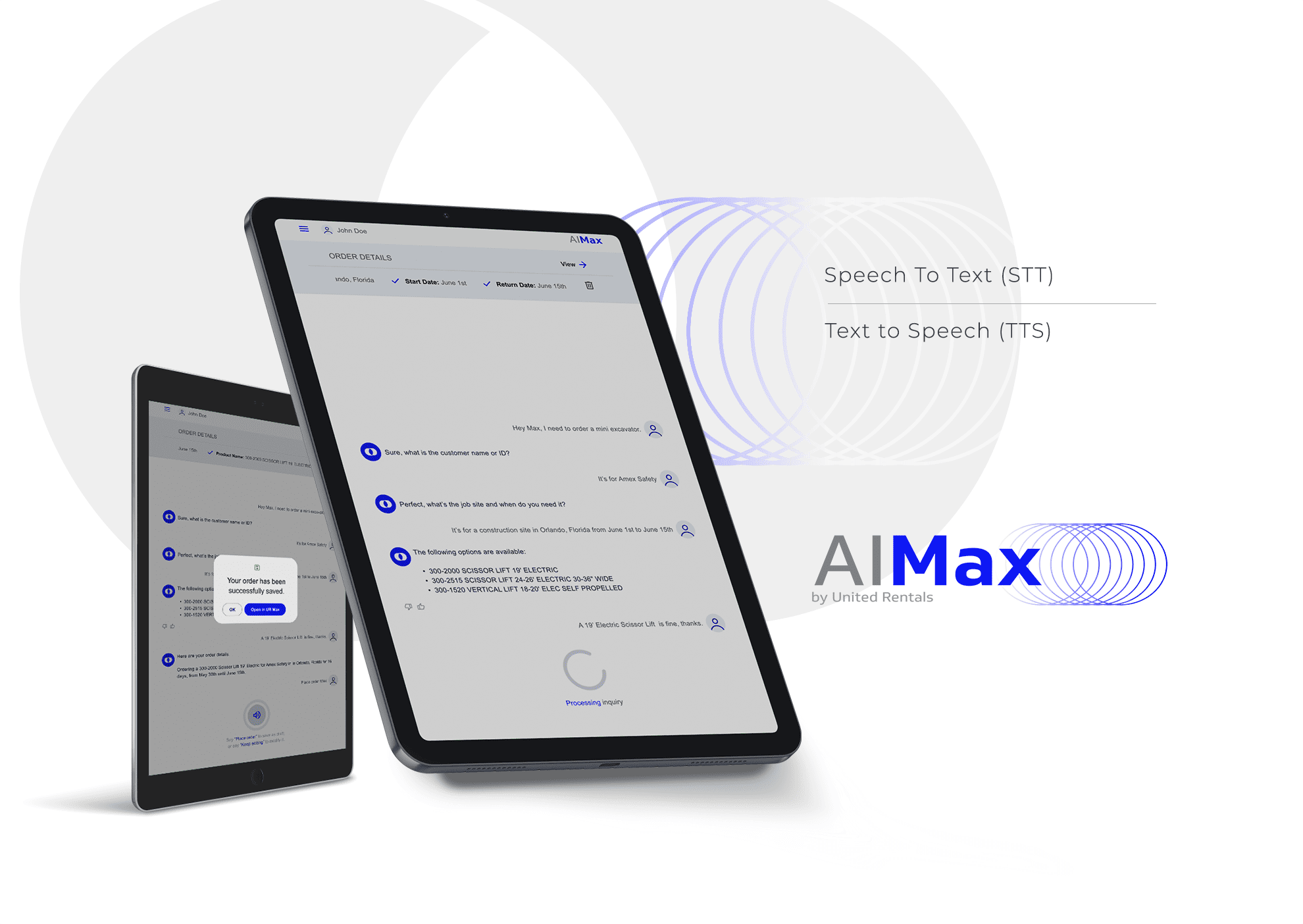 An AI-driven assistant app “AI Max” that enhances engagement through voice-to-voice experience and automates responses to support a salesperson placing a complex order while on the move.